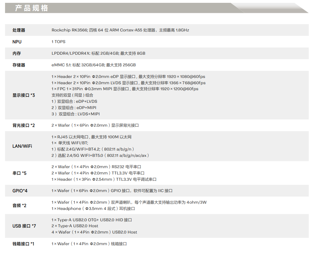 采用瑞芯微 RK3566 四核 64 位 Cortex-A55 處理器, 主頻最高 1.8GHz,效能有大幅提升;采用 22nm先進工藝,具有低功耗高性能的特點。